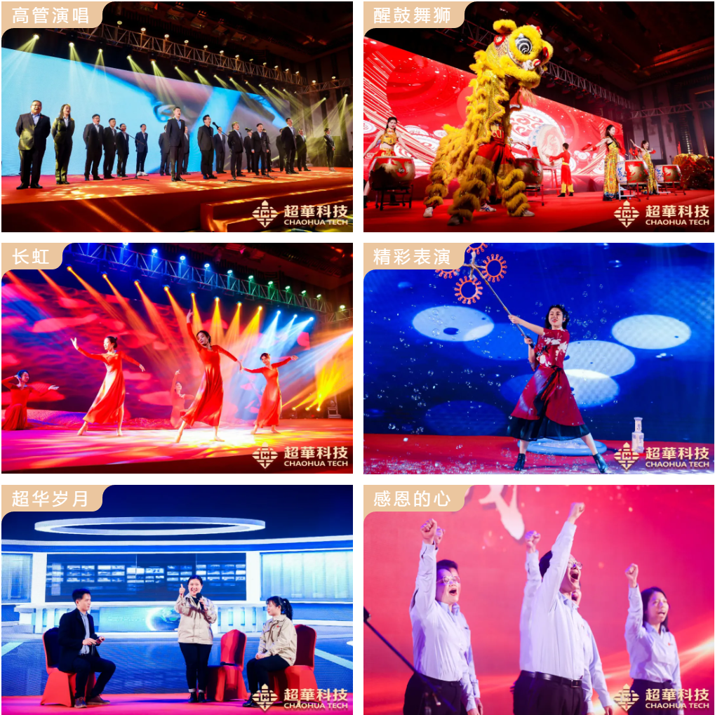 在晚宴期間,還開展了豐富多彩的文藝演出,醒獅鼓振奮人心,舞獅子神采奕奕,整個(gè)氣氛熱烈歡騰,意示著2022年超華科技虎虎生風(fēng)。而《眾人劃槳開大船》的節(jié)目,各位高管演唱熱情非常,把整個(gè)慶典的氣氛推向了高潮。熱辣的舞蹈串燒,帶動(dòng)了現(xiàn)場(chǎng)的歡快氛圍,《長(zhǎng)虹》節(jié)目的震撼,讓人嘆為觀止,更寓意著公司股票長(zhǎng)紅,高升不斷。最后由員工代表演唱的《感恩的心》,更是表達(dá)了全體員工與公司的深厚感情,為現(xiàn)場(chǎng)新添了溫馨的氛圍。