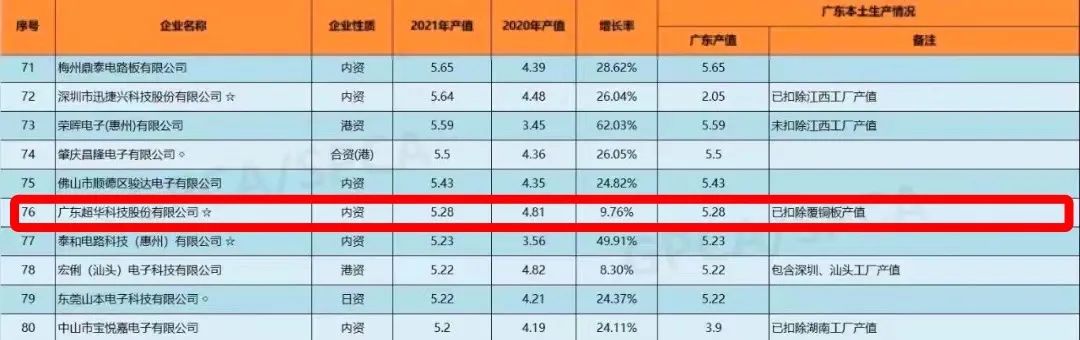 同時超華科技也是廣東省電路板行業(yè)協(xié)會副會長單位。連續(xù)多屆被評選為中國電子電路行業(yè)“優(yōu)秀民族品牌”企業(yè)。超華科技此次榮獲2021年度廣東省電路板“百強”企業(yè)稱號,是業(yè)內(nèi)各界對公司實力的認可。未來,公司將繼續(xù)秉持工匠精神,以高品質(zhì)產(chǎn)品服務(wù)于各行業(yè)用戶。同時,公司也將繼續(xù)加大研發(fā)創(chuàng)新,瞄準高端領(lǐng)域,為公司發(fā)展打造強勁增長引擎。